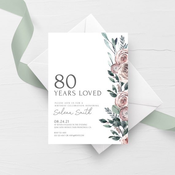 Buy 80th Birthday Invite Template Boho Rose 80th Birthday Online In India Etsy